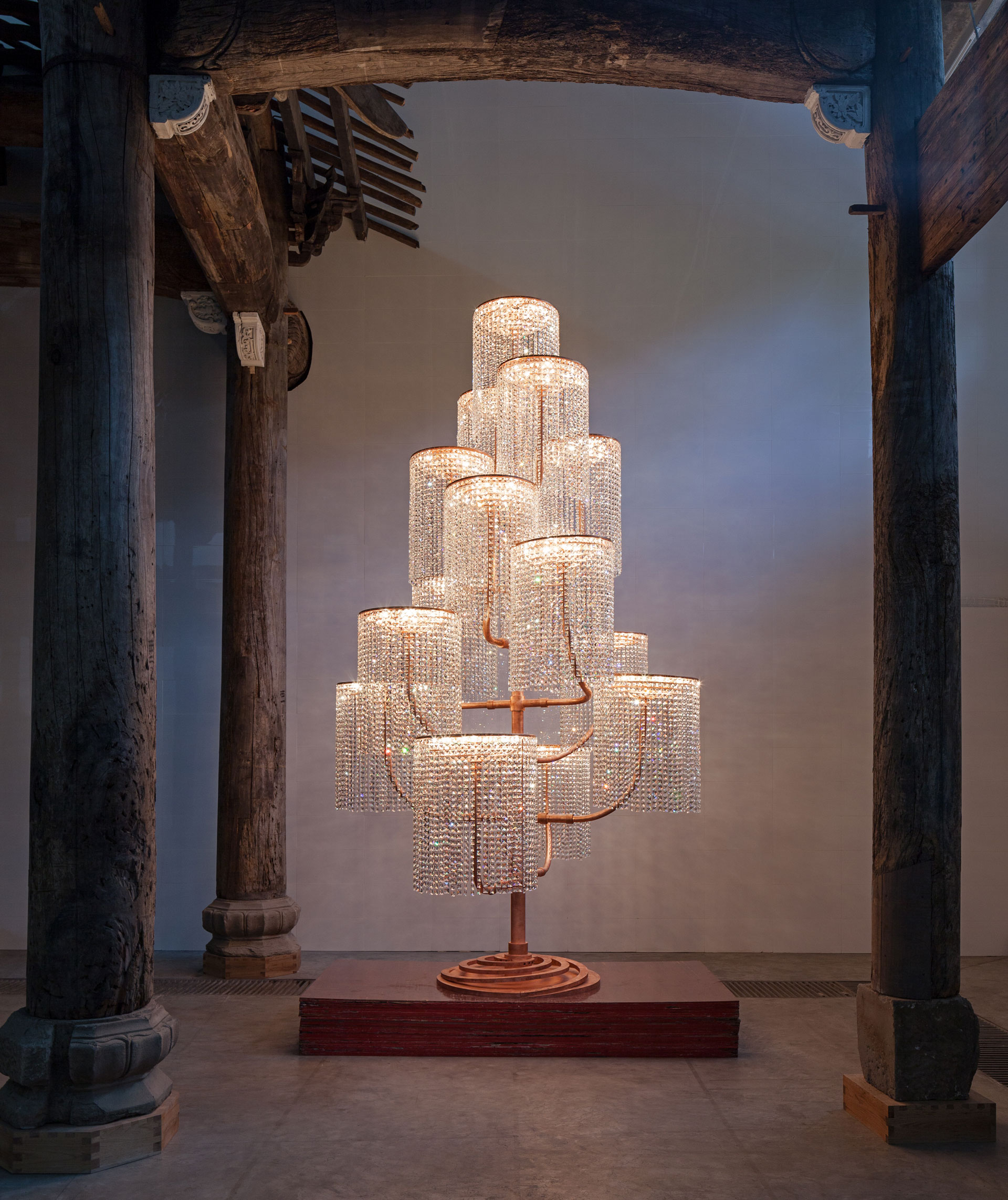 Ai WeiWei, Chandelier, 2015. Copper, crystal and light fixtures, 400 x 240 x 230 cm. © Ai Weiwei Studio.